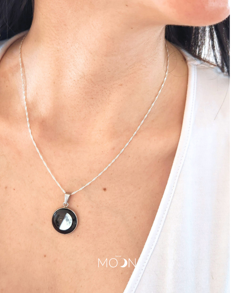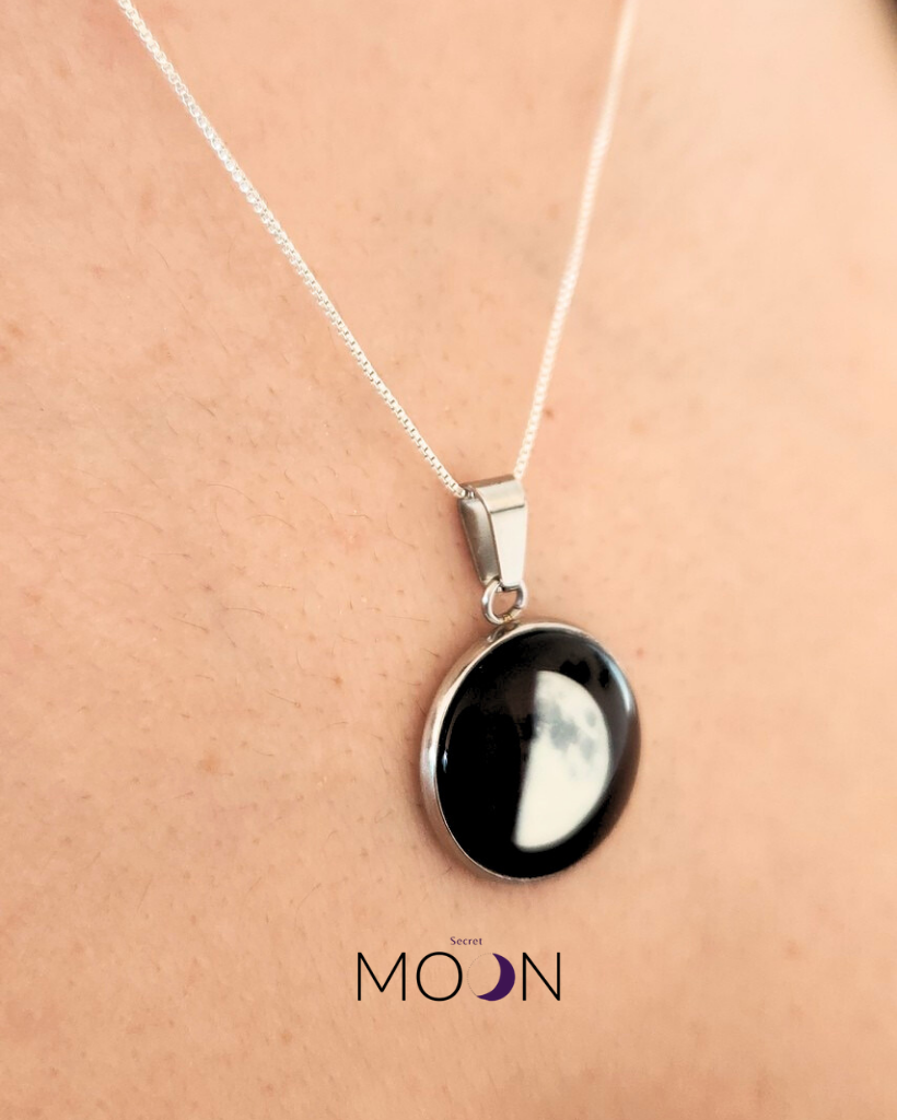Luna Cuarto Menguante - Cadena de acero quirúrgico o plata 925